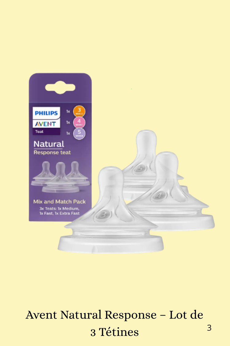 Accompagnez la croissance de votre bébé avec ce lot de 3 tétines Avent Natural Response :