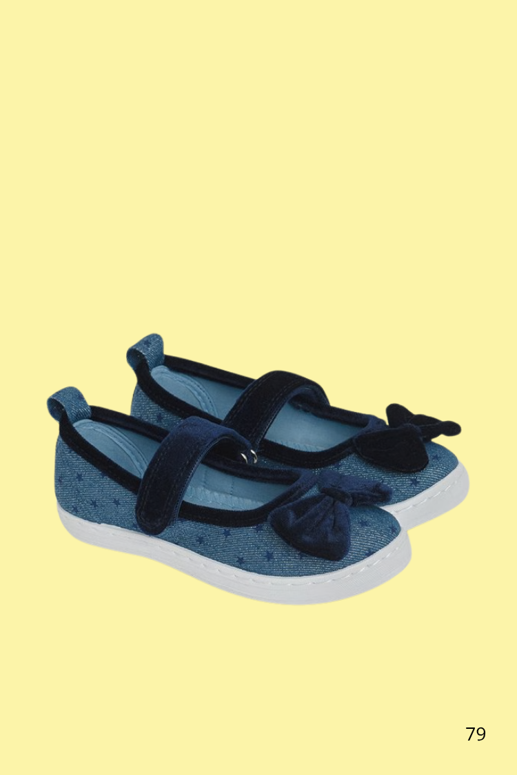 Babies chaussures Fille en Denim Bleu – Nœud Velours ( 3 – 4 ans )