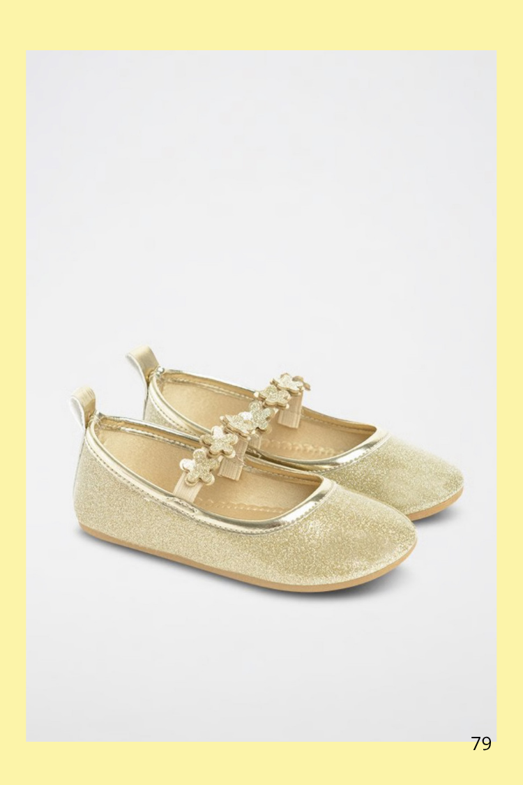 Des ballerines dorées scintillantes, parfaites pour illuminer chaque tenue de votre petite fille ✨.