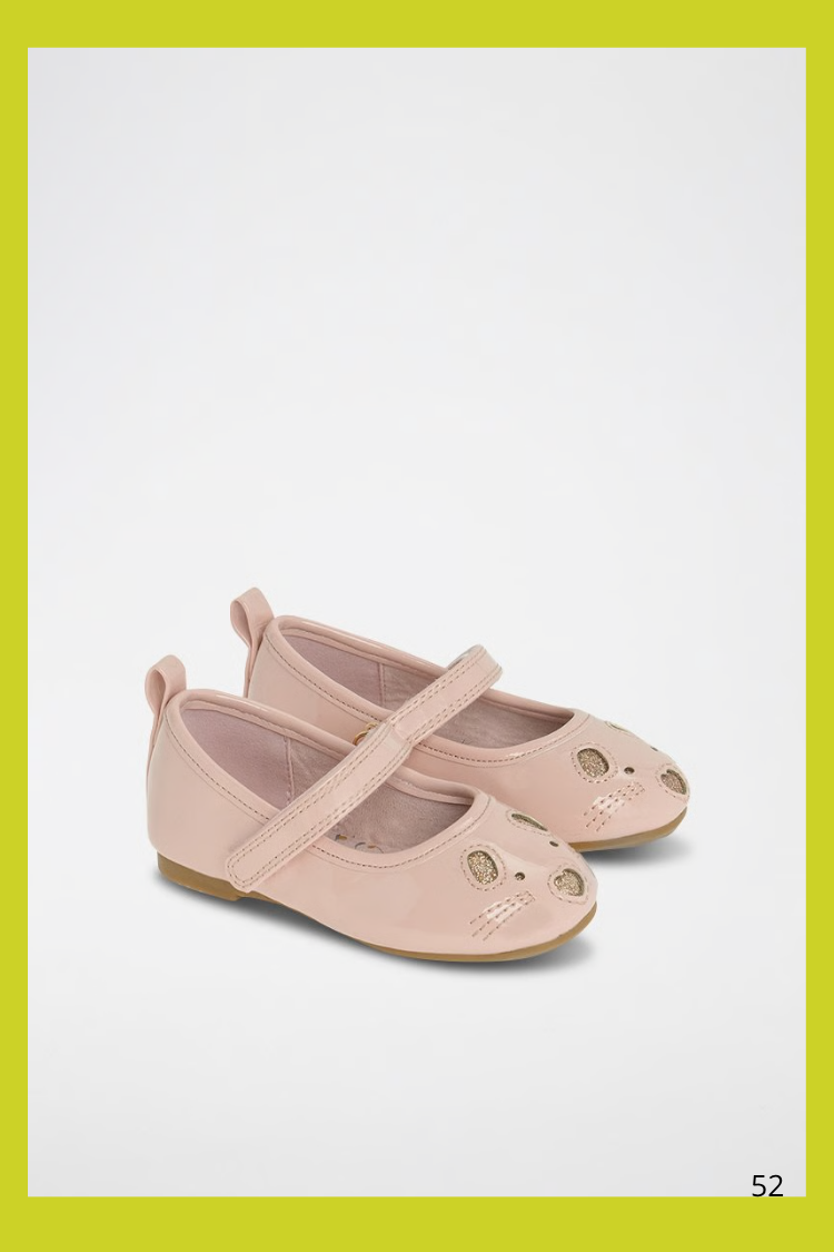 Adorables ballerines rose poudré avec détails cœur, bride velcro pratique et semelle souple antidérapante. Confort et style parfaits pour accompagner les petites filles de 3 à 7 ans au quotidien ou lors des occasions spéciales.