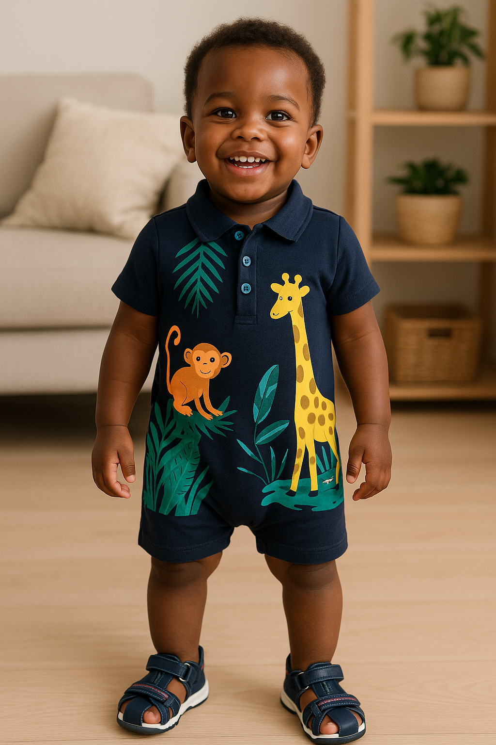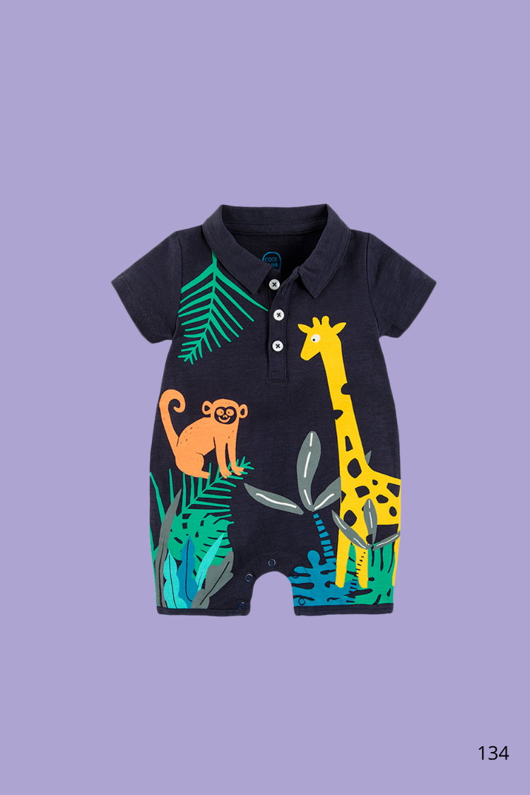 Cette adorable combinaison pour bébé est parfaite pour les petits explorateurs ! Avec son imprimé jungle coloré, elle transporte votre bout de chou au cœur de la savane.