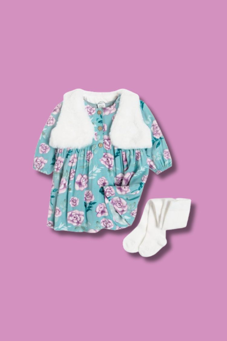 Cet ensemble robe fleurie, gilet en fourrure et collant blanc est conçu pour allier style et confort. Sa polyvalence permet à votre petite fille d’être habillée de manière chic tout en restant à l’aise, que ce soit pour une fête ou une sortie en famille. Grâce à ses matériaux de haute qualité, cet ensemble garantit durabilité et confort à chaque port.