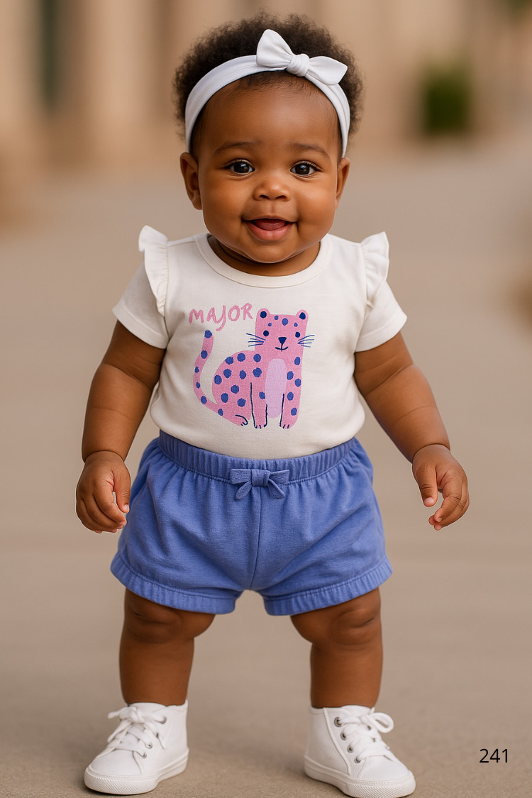 Un ensemble 2 pièces trop mignon pour votre bébé fille 3-6 mois ! Avec son body tout doux et son short confortable, elle sera à l’aise et stylée tout au long de la journée.