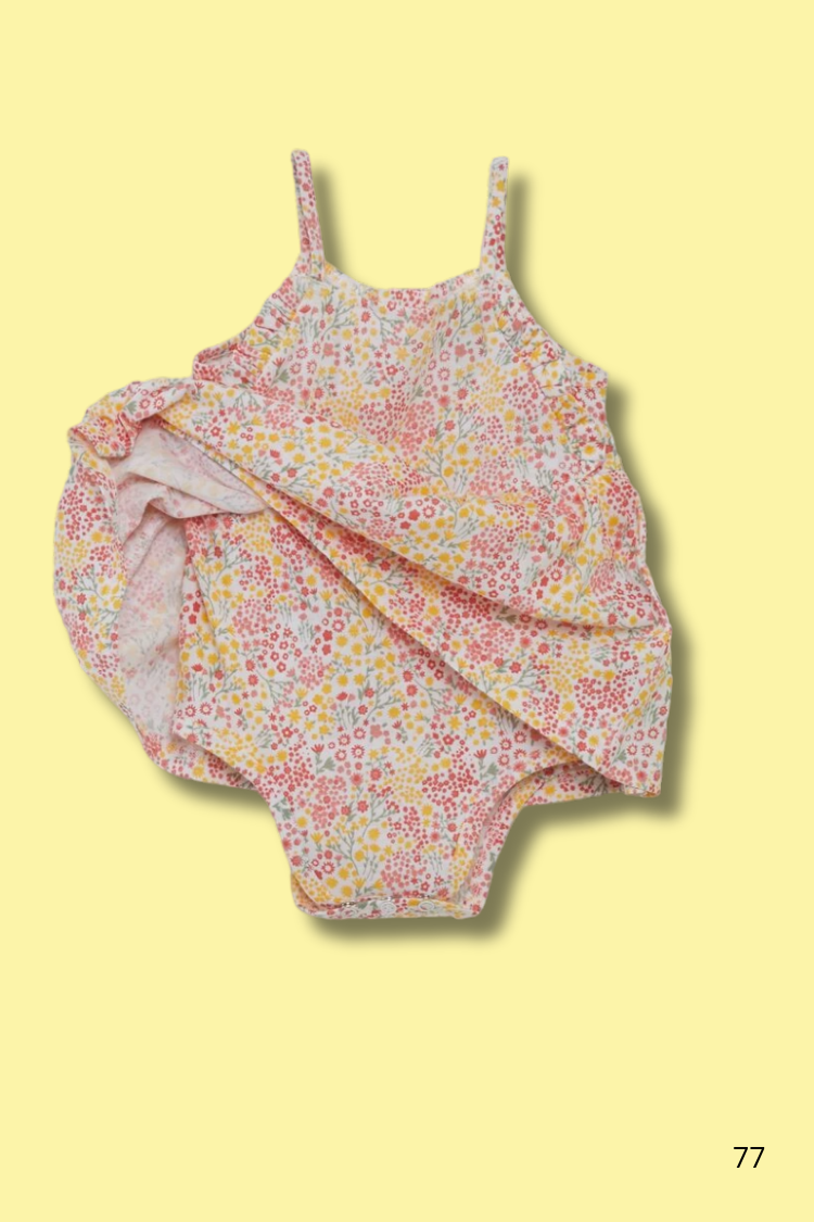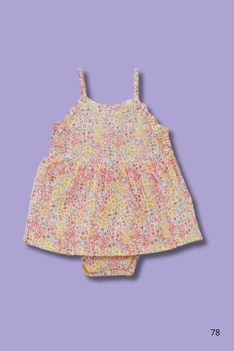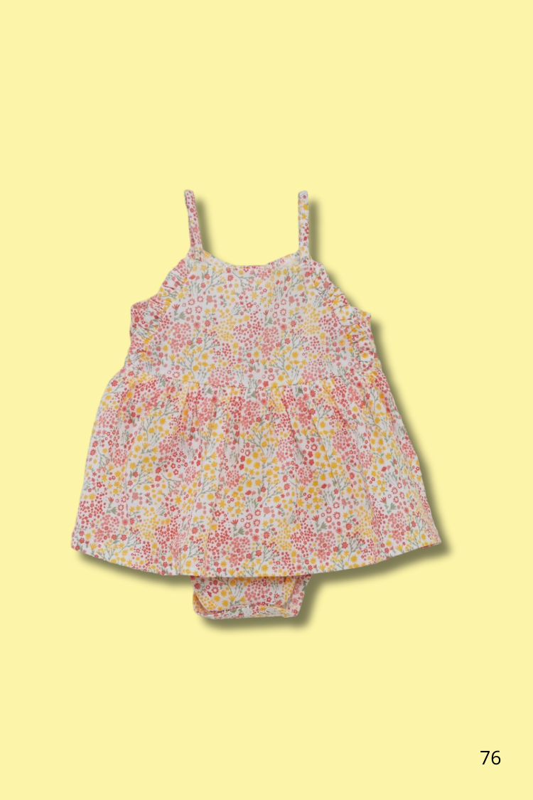 Craquez pour cet adorable ensemble composé d’une robe légère à volants et de son bloomer assorti. Son motif délicat, ses finitions soignées et son tissu respirant en font un indispensable du dressing estival de votre bébé.