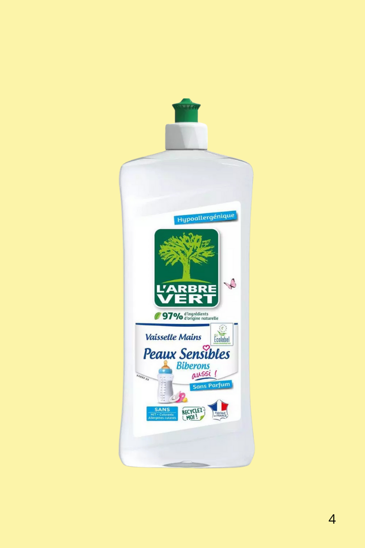 Le liquide vaisselle L’Arbre Vert est spécialement formulé pour nettoyer en douceur les biberons, tétines et accessoires de votre enfant, tout en respectant la peau délicate des parents.