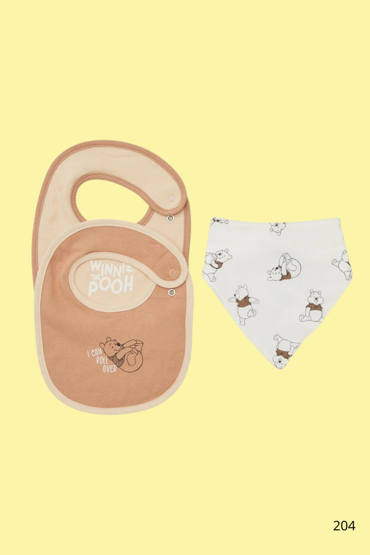 Bavoirs OURS-Beige -2triangles-1 rond coton -Lot de 3