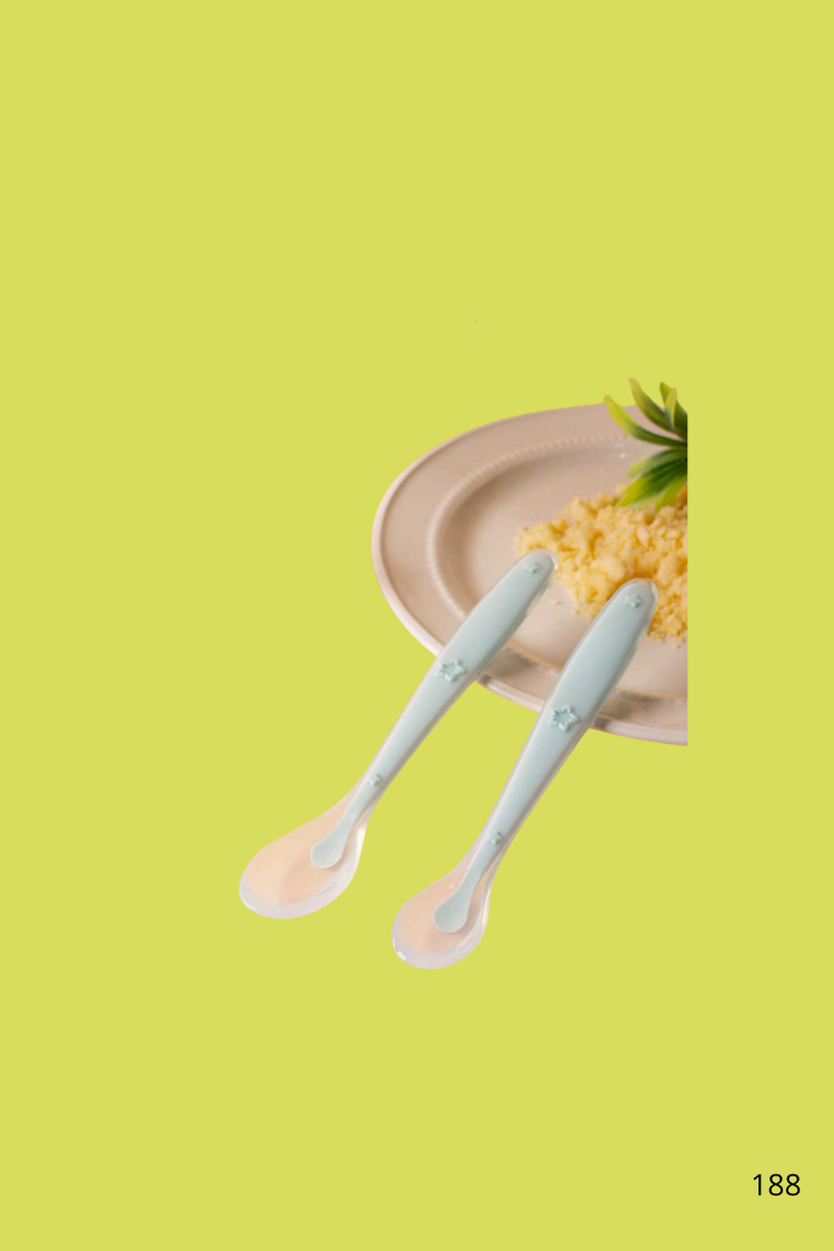 Ce lot de 2 cuillères en silicone vert clair est spécialement conçu pour les premiers repas de bébé. Leur embout souple et leur forme ergonomique les rendent parfaites pour les gencives sensibles et les petites bouches. La forme en étoile apporte une touche ludique et attrayante.