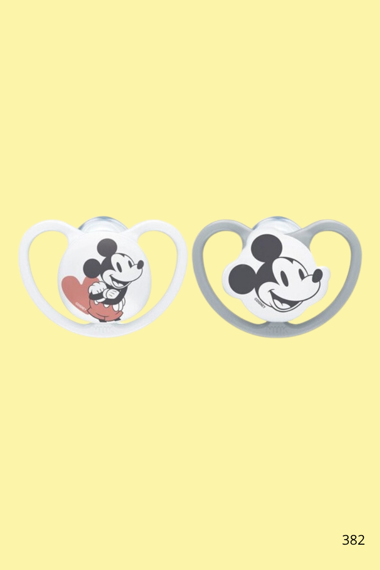 Les sucettes NUK Space sont conçues pour respecter le développement naturel de la bouche de bébé, tout en offrant un look craquant avec Mickey Mouse 🐭