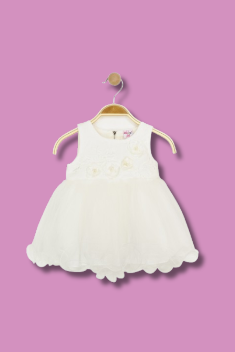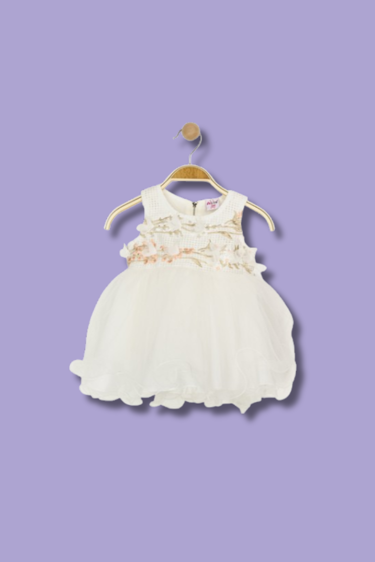 Confectionnée dans des matières douces et légères, cette robe évasée est parfaite pour les occasions spéciales. Sa couleur blanche pure est sublimée par de délicats motifs beige, créant un ensemble à la fois classique et tendance. La coupe ample et les détails raffinés font de cette robe une pièce incontournable du dressing de votre petite fille.